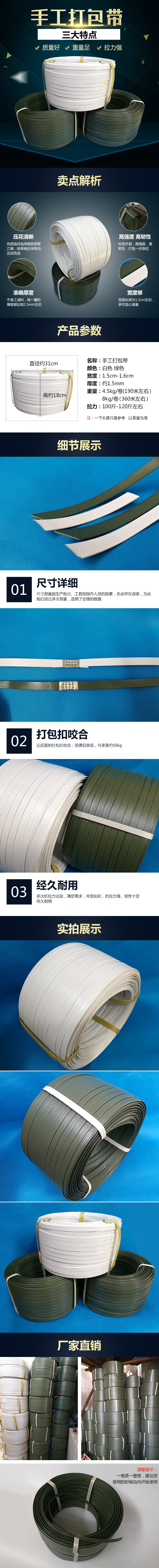 包裝用打包帶(捆扎帶)系以聚乙烯,聚丙烯樹脂為主要原料,也有以尼龍和聚酯為原料的,經(jīng)擠出單向拉伸制得。除用于瓦楞紙箱的封箱捆扎外,還可捆扎素材,水果等。